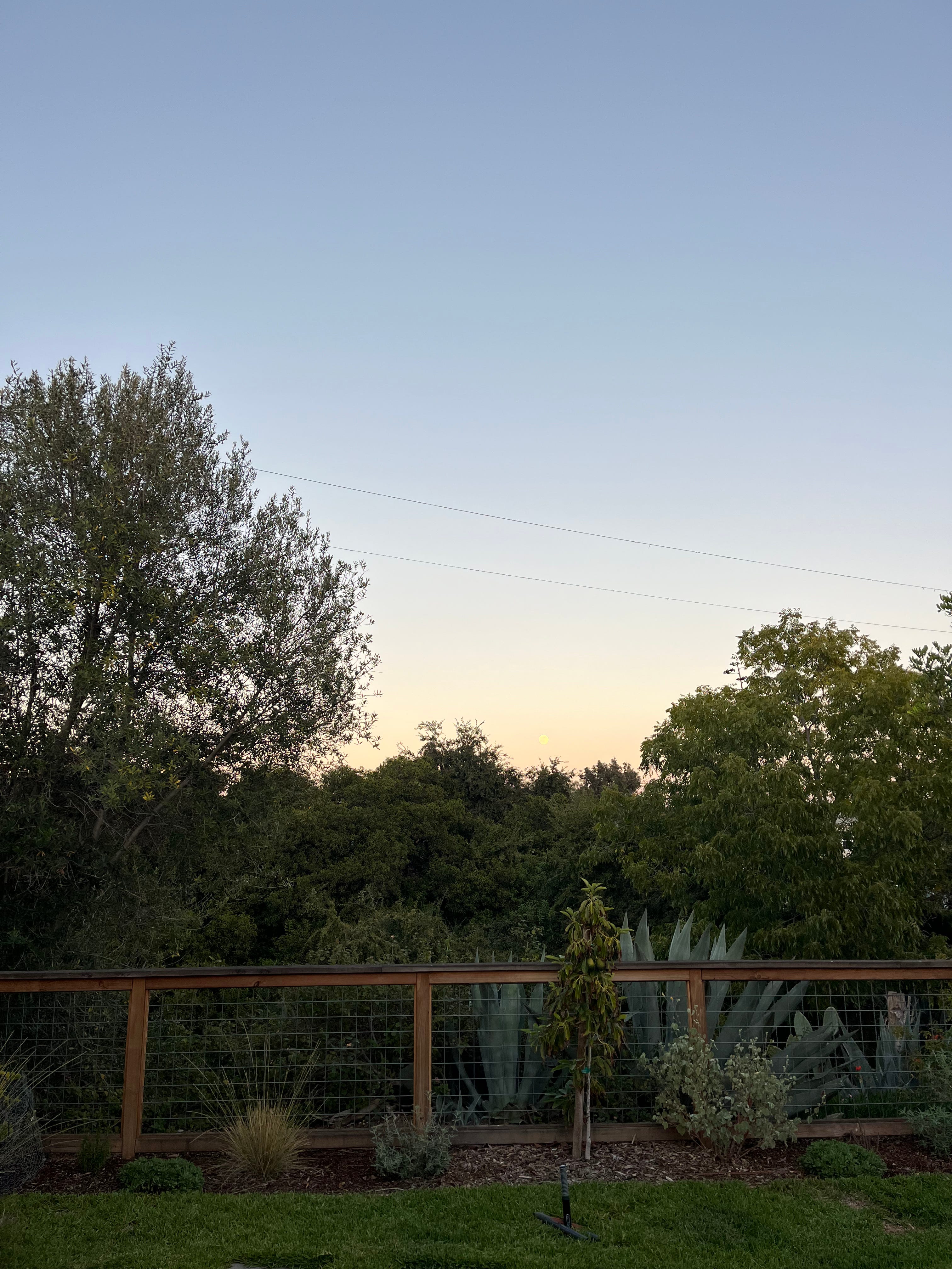 This is it; this is what’s real. Not the anxious thoughts or my spinning future plans or the distractions that whisk me from my body—but my actual life. The friends sprawled on our couch on a weeknight. The tending to small, sick bodies. The muffins, the voice texts, the phone conversations with my mom on a walk. The pecan tree leaves turning gold. The words typed while the sky is still dark. The closed door and the hands smacking it gleefully. The morning run with the dog through the canyon. The whole moon.